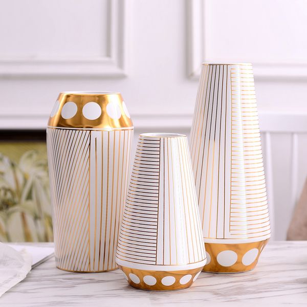 Simple Modern Home Decoration White Black Gold Ceramic Vase Flower Arrangement Software Gold Vases Gold Vases Cheap From Imuwendecor 25 13